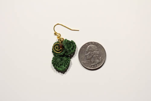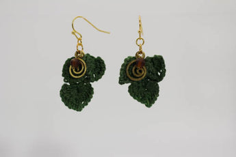 Ultra-lightweight Forest Green Triple Ivy Leaves w/Gold Swirl & Brown Bead