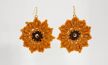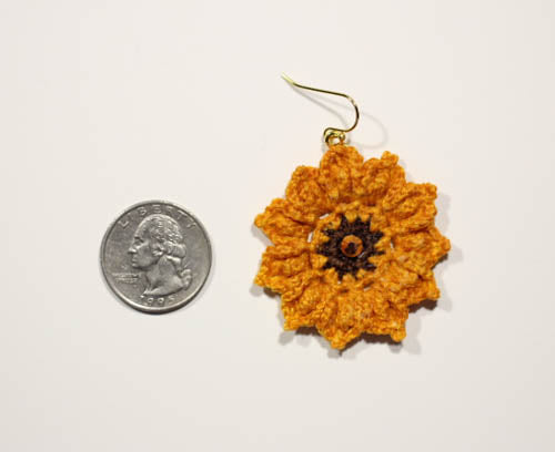 Lightweight goldenrod sunflower earrings with gold rhinestones