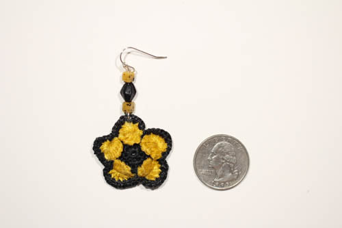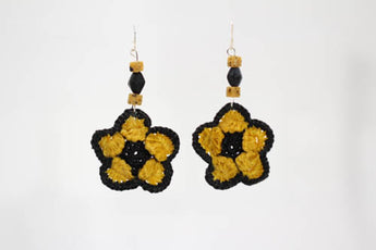Lightweight, petite sunflowers crafted with black and gold beads on the findings