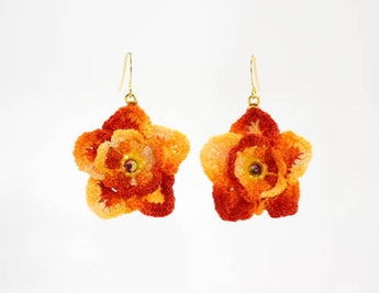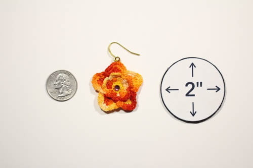 Lightweight red, orange, and yellow ruffled sunset flower earrings