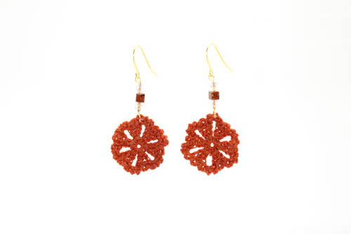 Ultra-Lightweight rust colored polygon earrings w/brown and clear beads