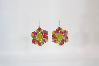 Ultra-lightweight, spring green flower earrings with rhinestones