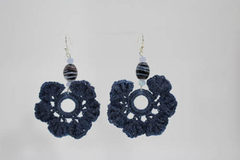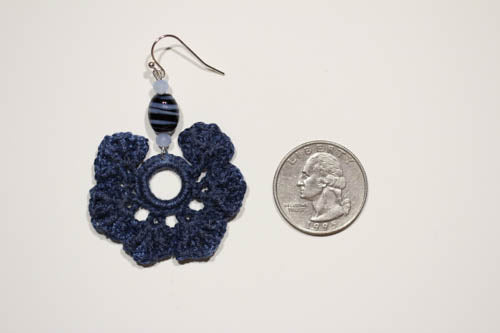Lightweight navy blue 6-pedal flowers accented w/blue glass bead